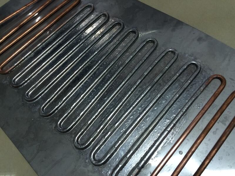 用铜与不锈钢锡焊膏,改进后的工艺--刷焊膏,放到焊台上,加热,冷却,用水冲洗就可以了。然后送到下一道工序去发泡。之前传统工艺的电阻焊,点焊,刷导热胶,铺胶纸,打木条等工序,全都可以省略 。