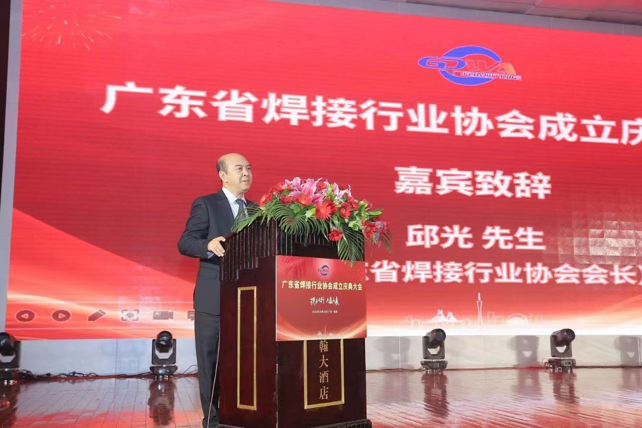 接下来,由当选为广东省焊接行业协会的会长邱光先生发表致辞。邱光先生首先对广东省焊接行业协会成立大典大会的召开表示热烈的祝贺!随后,邱会长与会领导和嘉宾介绍了协会成立的背景、未来的发展和定位,邱会长指出在未来,广东省焊接行业协会将继续发挥协会各单位的优势力量,主要从服务、连接和创新等方面开展具体工作,不断推动创新,以实现广东省焊接行业的繁荣发展。